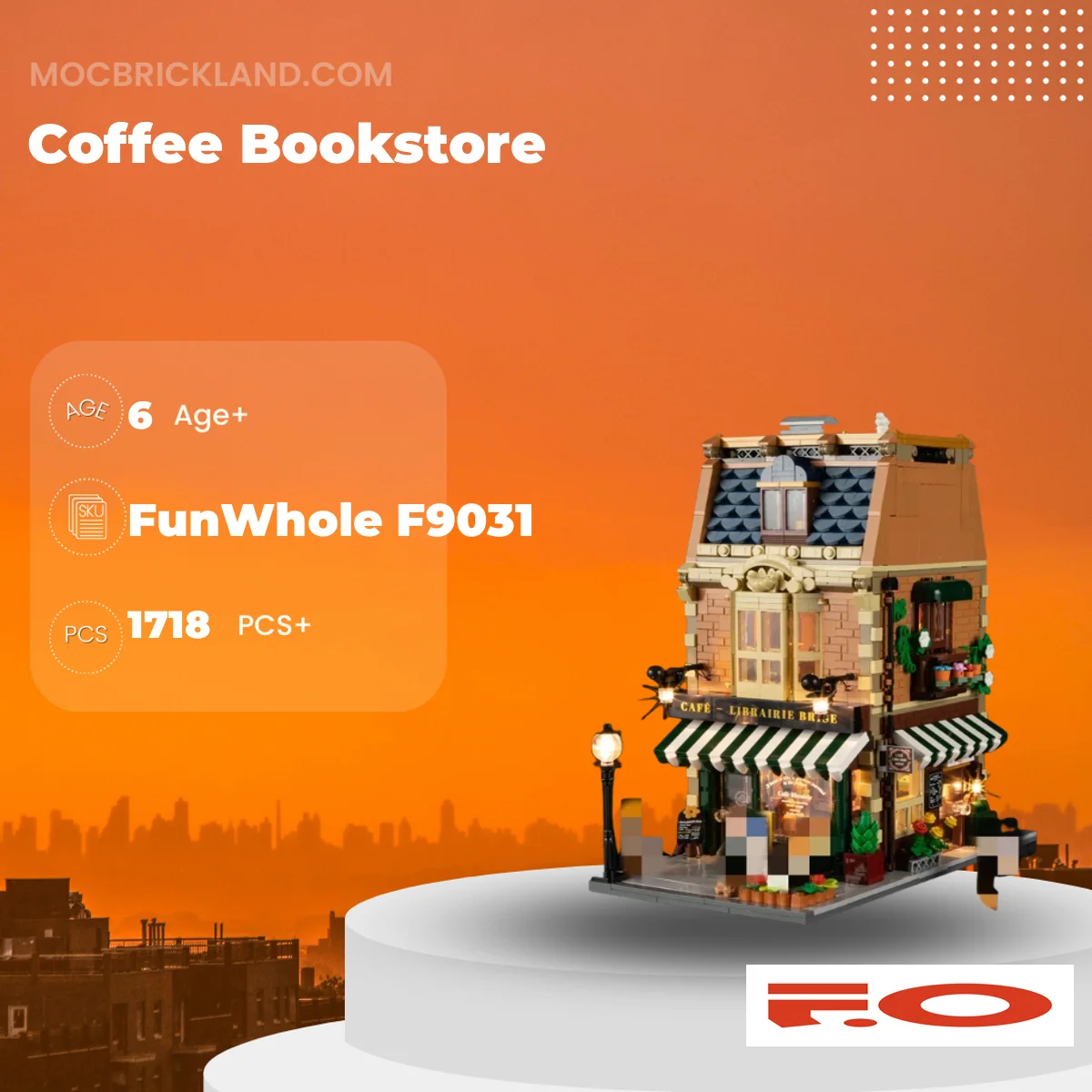Coffee Bookstore FunWhole F9031 Modular Building with 1718 Pieces